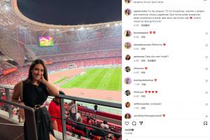 体育资讯3月26日讯 国足主场与澳大利亚的比赛结束后,塞尔吉尼奥的妻子更新社媒,晒出了自己在现场观赛的感受。